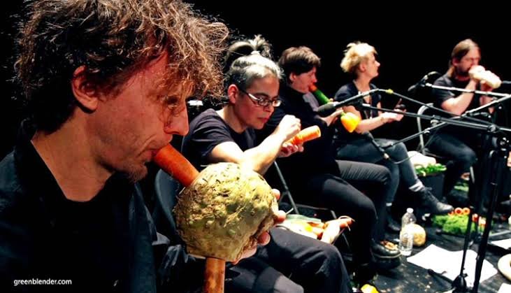 Sebuah kelompok musik dari Wina, Austria bernama Vienna Vegetable Orchestra. Grup ini didirikan pada tahun 1998. Di Astria sendiri, mereka disebut Das erste Wienner Gemueseorchester. Kalian tau? Grup musik ini membuat alat musik mereka dalam waktu satu jam sebelum konser, jadi dibuatnya bisa dibilang secara mendadak. Mereka menjadikan lobak, wortel, dasn mentimun untuk seruling. Mereka jadikan labu kuning yang besar dan berkulit keras untuk bas drum. Mereka mengisi botol dengan biji-bijian untuk alat musik maracas dan masih banyak lagi yang mereka buat. Namun, agar suaranya bisa terdenga lebih terdengar lebih jelas, diperlukan mikrofon.